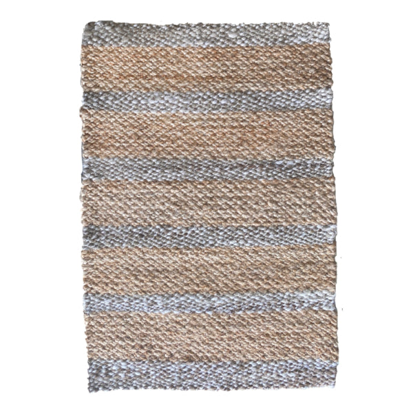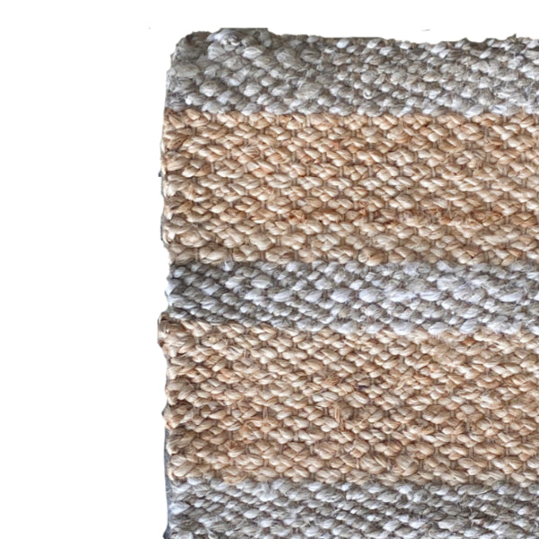 - Natural jute colour with grey and white stripes.